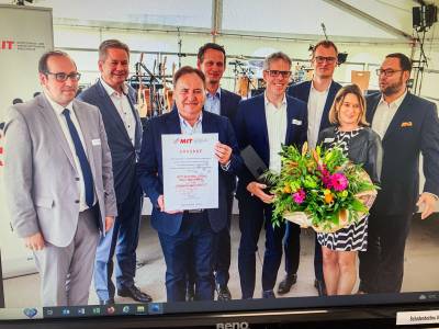 Der Mittelstandspreis 2023 geht an den erfolgreichen Odenwälder Unternehmer Peter Jöst mit seinem Unternehmen JÖST Abresives GmbH. Die Mittelstands- und Wirtschaftsunion Bergstraße (MIT) würdigt mit dem Preis einmal im Jahr besonders erfolgreiche Unternehmen aus dem Mittelstand, die in der Region in besonderer Weise für Innovation und Arbeitsplätze stehen. In seiner Laudatio würdigte der Vorsitzende der MIT Bergstraße Landrat a.D. Matthias Wilkes das Lebenswerk von Peter Jöst (3. v. r.), der sich vor über 40 Jahren in einem Kellerraum seines Bruders im heimischen Affolterbach selbständig machte. Durch unternehmerische Tugenden, Mut, und Erfindergeist hat er ein Unternehmen aufgebaut, was es aus dem Odenwald mit globalen Wettbewerbern aufnehmen kann. Die Überreichung der Urkunde erfolgte im Rahmen der offiziellen Einweihungsfeier des neuen Logistikzentrums am heimischen Standort Ober-Absteinbach. Heute beschäftigt das Unternehmen 68 Mitarbeiterinnen und Mitarbeiter an zwei Standorten. Die beiden Söhne Christian (4. v. r.) und Dominik (1. v. r.) sind heute im Unternehmen ebenfalls in der Verantwortung. Zur Überreichung waren zudem die Vorstandsmitglieder der MIT Bergstraße (v. l. n. r.) Michael Radtke, Dr. Alexander Bode, Dr. Stefan Griesheimer und Werner Hartmann (Ehrenvorsitzender) vertreten.