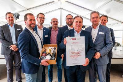 Der Mittelstandspreis 2023 geht an den erfolgreichen Odenwälder Unternehmer Peter Jöst mit seinem Unternehmen JÖST Abresives GmbH. Die Mittelstands- und Wirtschaftsunion Bergstraße (MIT) würdigt mit dem Preis einmal im Jahr besonders erfolgreiche Unternehmen aus dem Mittelstand, die in der Region in besonderer Weise für Innovation und Arbeitsplätze stehen. In seiner Laudatio würdigte der Vorsitzende der MIT Bergstraße Landrat a.D. Matthias Wilkes das Lebenswerk von Peter Jöst (3. v. r.), der sich vor über 40 Jahren in einem Kellerraum seines Bruders im heimischen Affolterbach selbständig machte. Durch unternehmerische Tugenden, Mut, und Erfindergeist hat er ein Unternehmen aufgebaut, was es aus dem Odenwald mit globalen Wettbewerbern aufnehmen kann. Die Überreichung der Urkunde erfolgte im Rahmen der offiziellen Einweihungsfeier des neuen Logistikzentrums am heimischen Standort Ober-Absteinbach. Heute beschäftigt das Unternehmen 68 Mitarbeiterinnen und Mitarbeiter an zwei Standorten. Die beiden Söhne Christian (4. v. r.) und Dominik (1. v. r.) sind heute im Unternehmen ebenfalls in der Verantwortung. Zur Überreichung waren zudem die Vorstandsmitglieder der MIT Bergstraße (v. l. n. r.) Michael Radtke, Dr. Alexander Bode, Dr. Stefan Griesheimer und Werner Hartmann (Ehrenvorsitzender) vertreten.